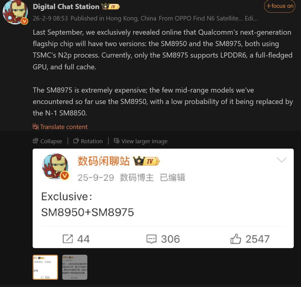 According to a new leak from the reliable tech insider @DigitalChatStation, Qualcomm is preparing to shake up its flagship lineup with a dual-chip strategy for the next generation. The leak reveals that the company is developing two distinct versions of its upcoming processor, identified by model numbers SM8950 and SM8975.