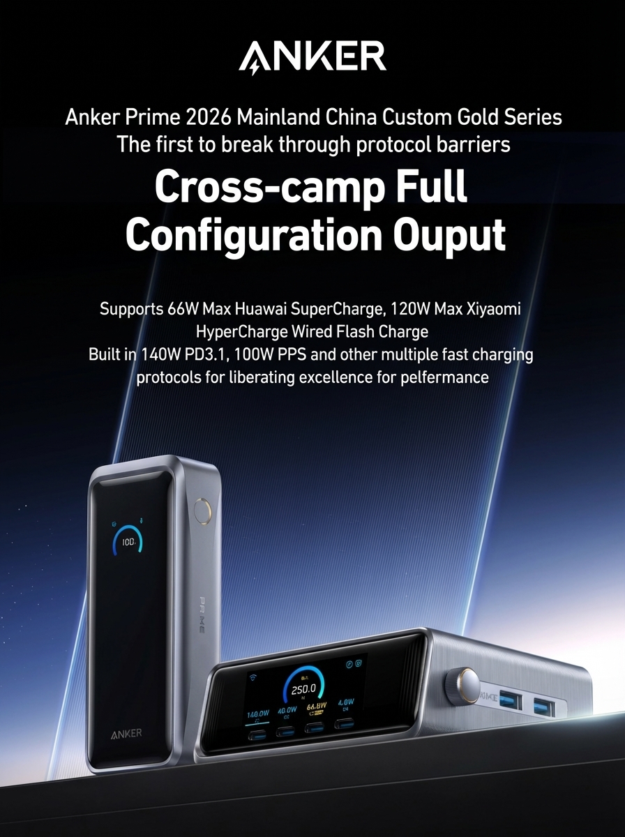 The Chinese mainland has just seen the release of the highly anticipated Anker Prime 2026 Customized Gold Label Series power bank. Taking the lead in breaking traditional protocol barriers, this massive power bank brings true cross-camp compatibility, notably featuring native support for Xiaomi’s proprietary fast-charging protocols. Currently launched exclusively in China, this device is priced at 1099 CNY (approximately $160 USD) and aims to be the ultimate portable energy station for power users.
