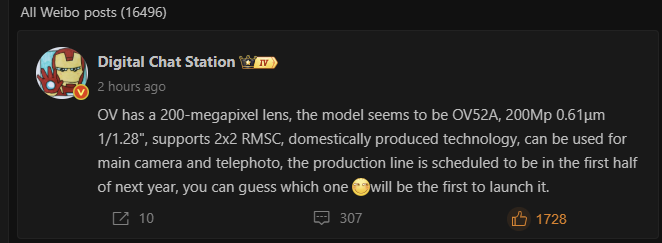 According to the initial information, the purported OmniVision OV52A boasts a formidable 200-megapixel resolution packed into a 1/1.28-inch sensor size. The individual pixel size is reported to be 0.61μm, a specification that suggests a strong focus on capturing intricate detail. The sensor is also said to support 2×2 RMSC (Remix Sub-pixel Combining), a technology designed to enhance low-light performance and color accuracy by intelligently grouping pixels.