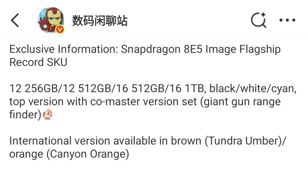 The new information comes from well-known Chinese tipster Digital Chat Station. According to the leak, a Snapdragon 8 Elite-powered flagship from a major manufacturer — widely believed to be the OPPO Find X9 Ultra — will launch with several RAM and storage configurations.
