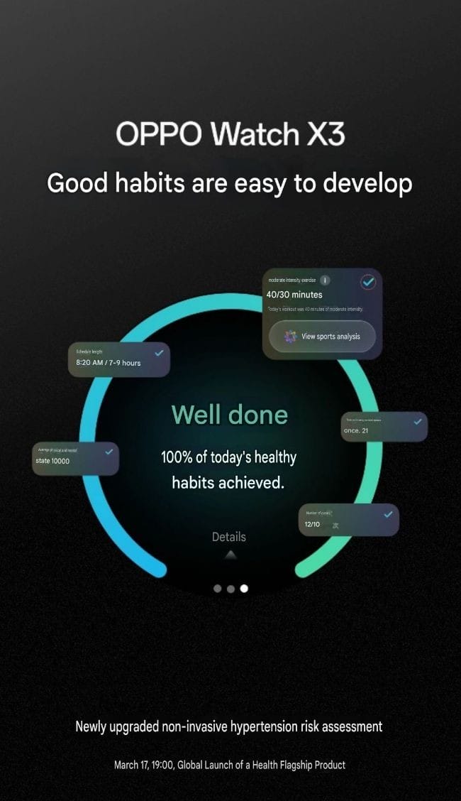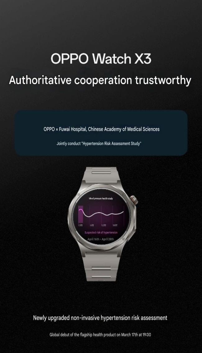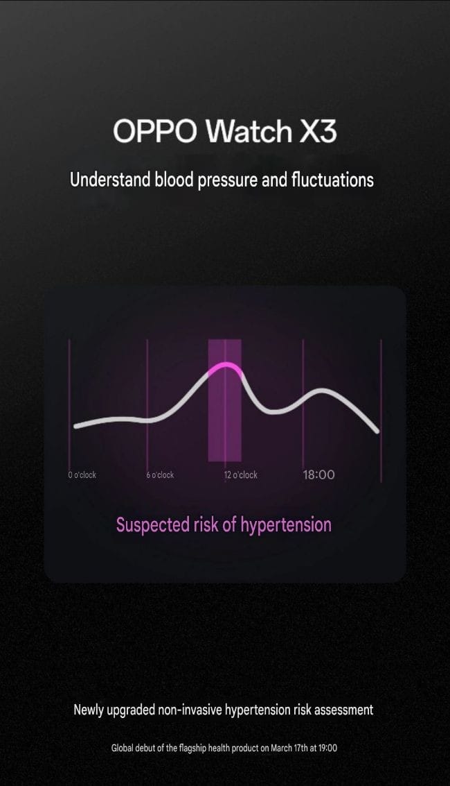 According to OPPO, the Watch X3 will introduce an upgraded non-intrusive hypertension risk assessment system. The company describes the smartwatch as a “health flagship” because of its advanced monitoring capabilities.