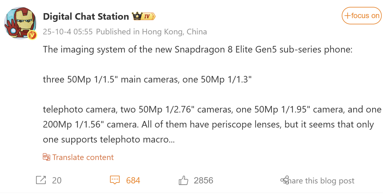 Beyond the main camera, the details on the secondary and tertiary lenses are fascinating. The telephoto realm will include a mix of large-pixel sensors, such as a 200-megapixel lens with a 1/1.56-inch sensor on one variant, and two other models utilizing a 50-megapixel telephoto lens with a 1/2.76-inch sensor.