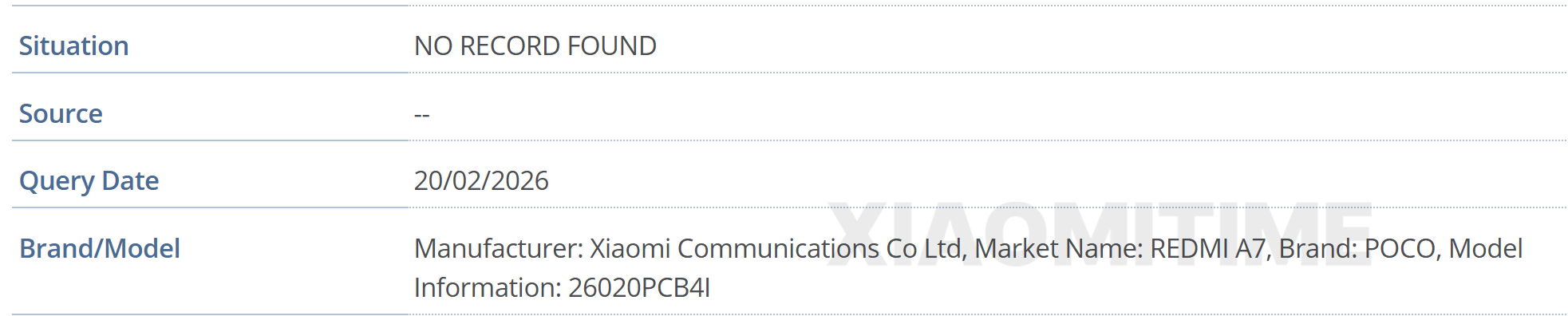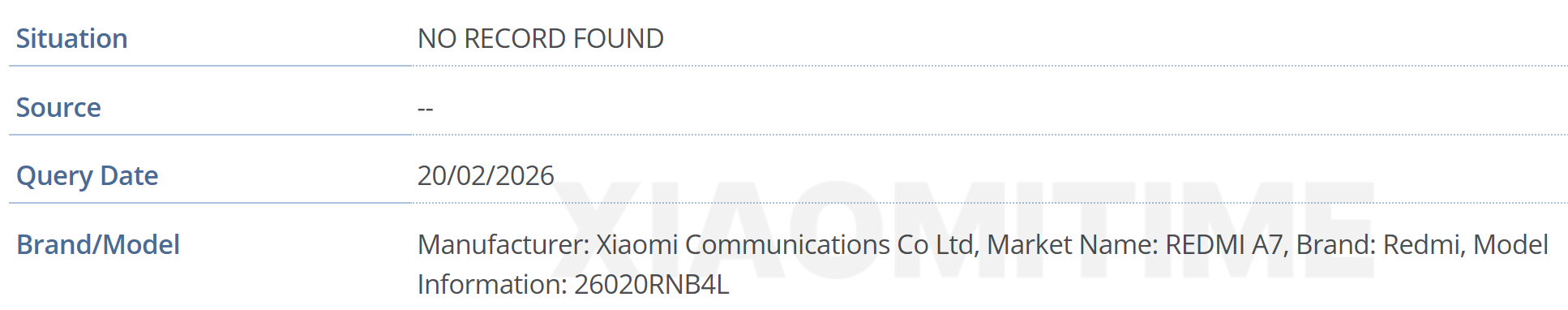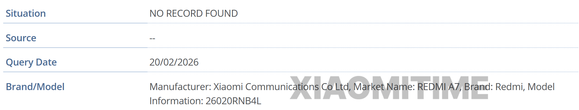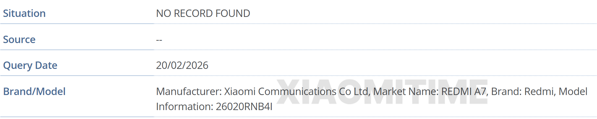 The REDMI A7 has officially passed Thailand’s NBTC certification under the model number 26020RNB4A. Official data confirms this is an entry-level smartphone restricted to 4G networks. The device is built around a large display and a high-capacity 6000mAh battery. It will launch alongside the REDMI A7 Pro, which is also confirmed as a 4G-only device.