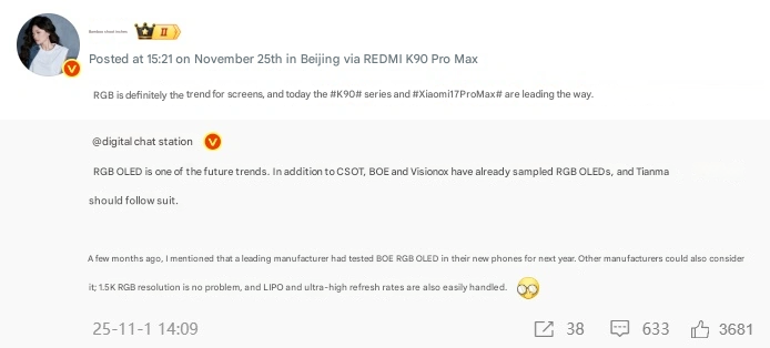 With the confirmation from Sun Cun, there is now solid evidence to prove that future flagships of Xiaomi’s Redmi and Xiaomi brands will soon be featuring RGB OLED displays in multiple product lines and series, such as the Xiaomi Pad series, Xiaomi 17 series, along with imminent models of the Redmi K Ultra. This definitely represents an important shift in the direction of more **accurate, energy-efficient, and more durable display offers.