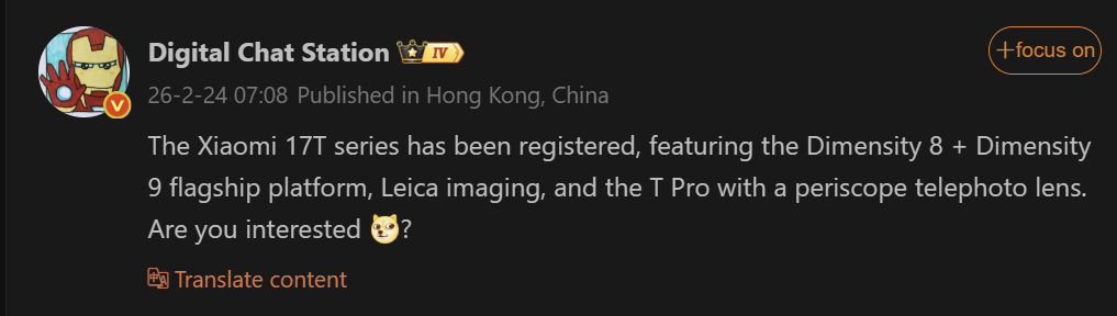 According to @DigitalChatStation, the Xiaomi 17T series has officially been registered and is progressing much faster than previous generations. Here are the latest confirmed details regarding the new lineup: