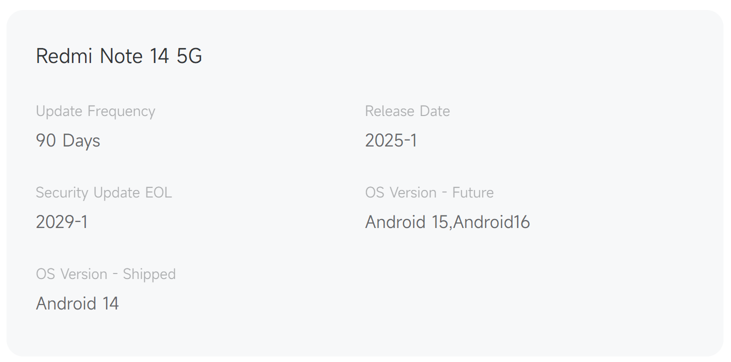 Xiaomi also mentioned this clearly at the REDMI Note 14 5G specifications page.