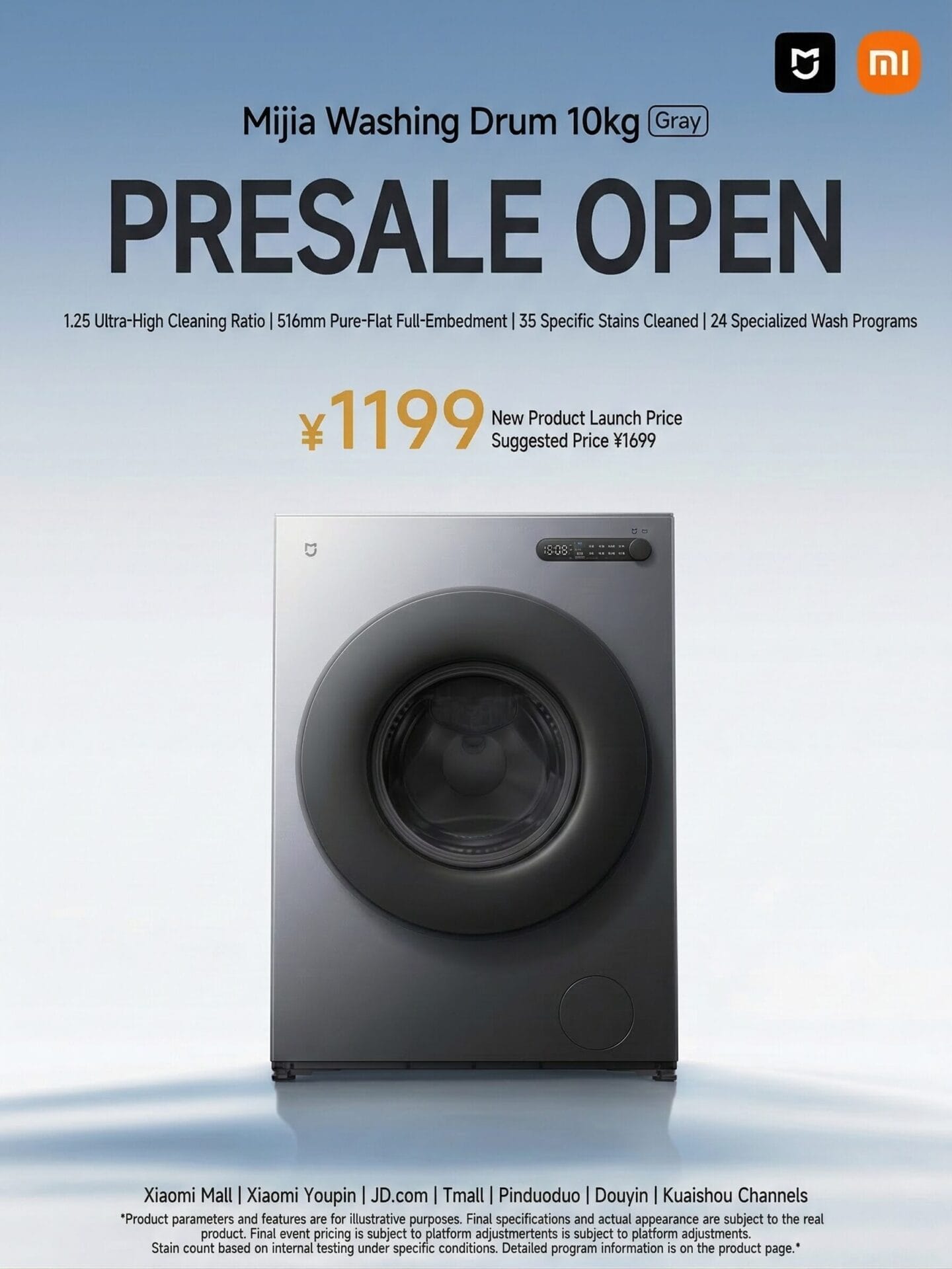 The Mijia Drum 10kg Gray Edition is currently available for pre-order in the Chinese market. Global fans should look for future announcements regarding international availability under the Xiaomi or Mijia branding.