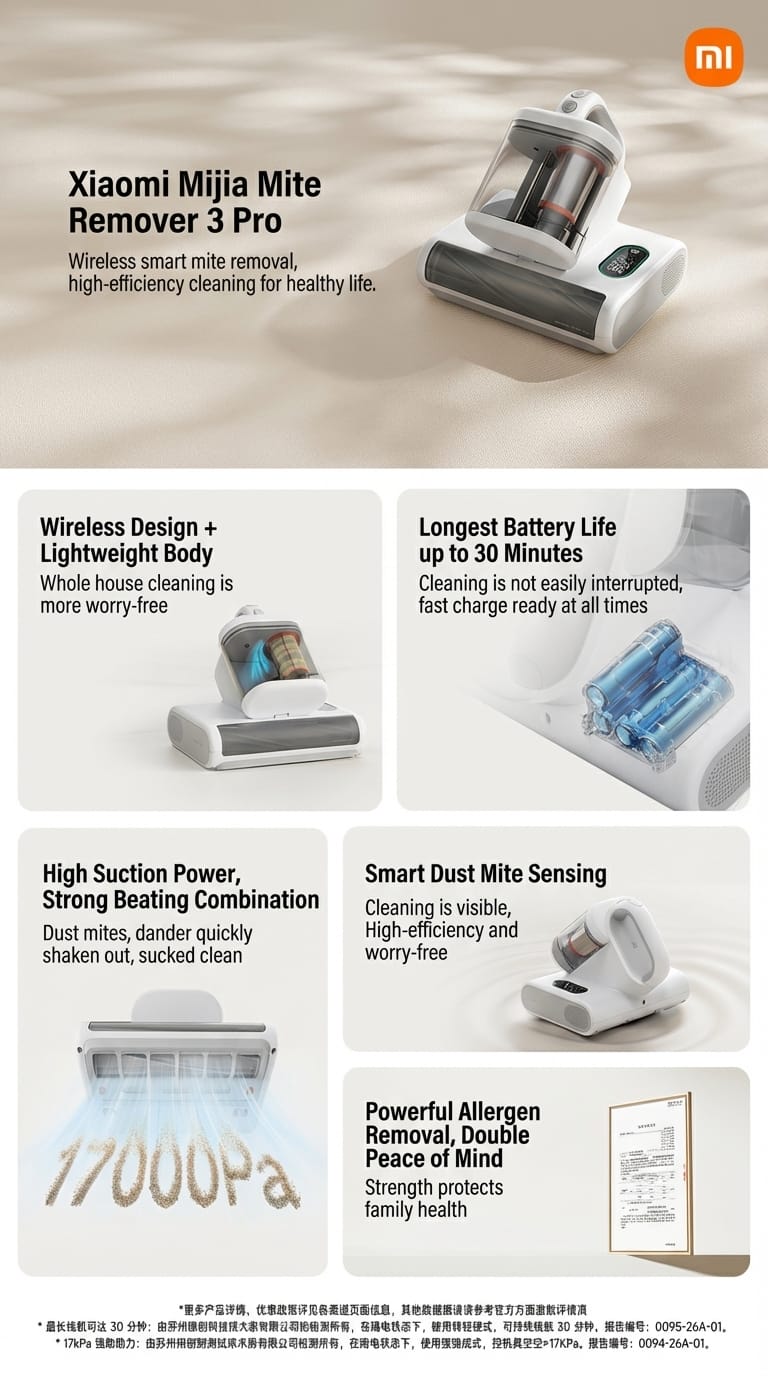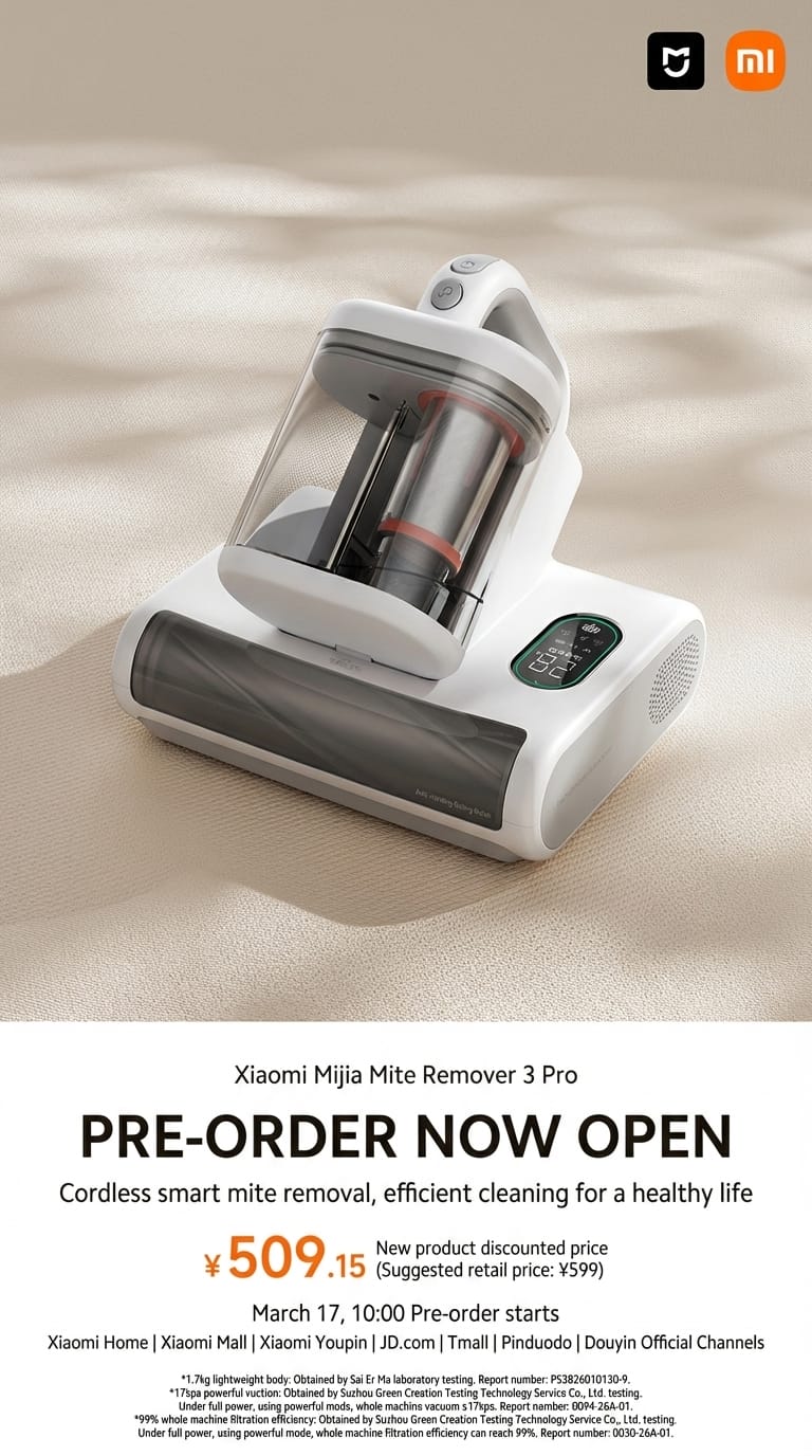 Xiaomi has officially expanded its smart home ecosystem today with the introduction of the Mijia Mite Remover 3 Pro. This next-generation cleaning tool is designed to tackle allergens and dust mites with professional-grade precision. Currently launched exclusively in the China market, the device is priced at 599 Yuan (approximately $84 USD), with an introductory promotion bringing the price down to 509.15 Yuan (~$71 USD) through local subsidies.