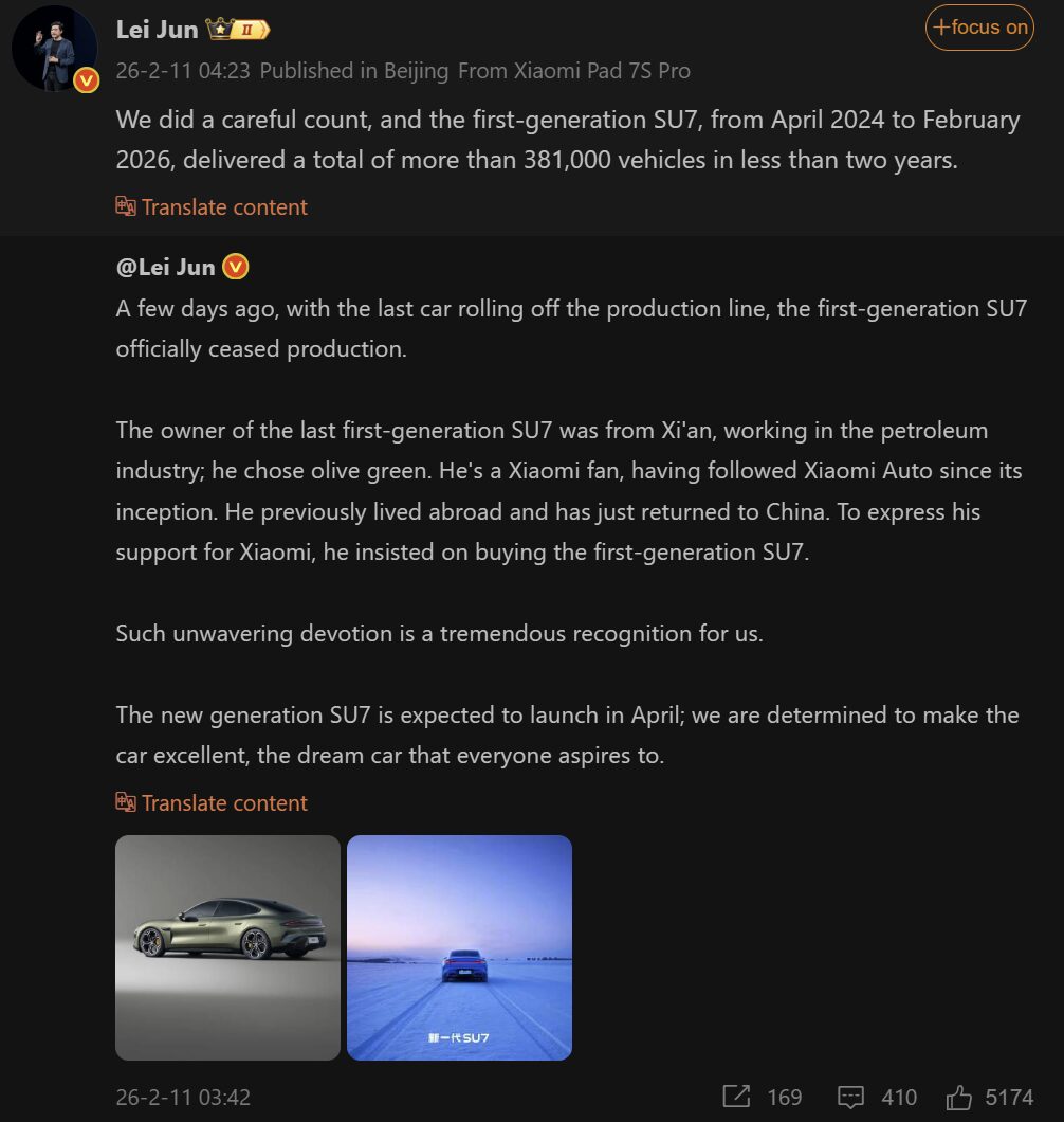 In a massive milestone for its automotive division, Xiaomi CEO Lei Jun has officially announced the final numbers for the first-generation Xiaomi SU7. Following a statistical review, the company confirmed that its debut EV delivered over 381,000 units in less than two years (April 2024 – Feb 2026).