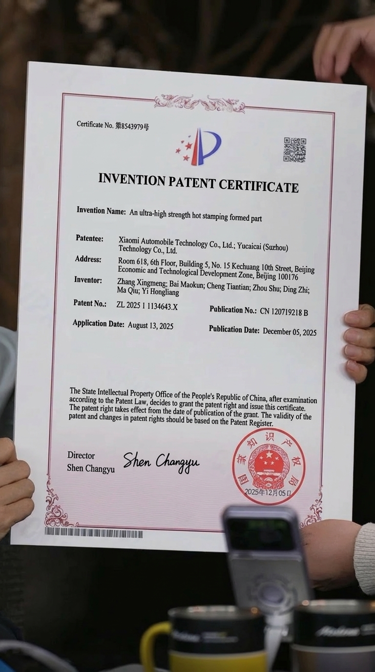 Xiaomi CEO Lei Jun has announced that the company’s proprietary 2200MPa Super Strong Steel has secured the “First Prize of Scientific and Technological Innovation Achievements” from the China Association for the Promotion of Industry-University-Research Cooperation. This award is the highest honor for collaborative innovation in China, highlighting Xiaomi’s leap in automotive material science.