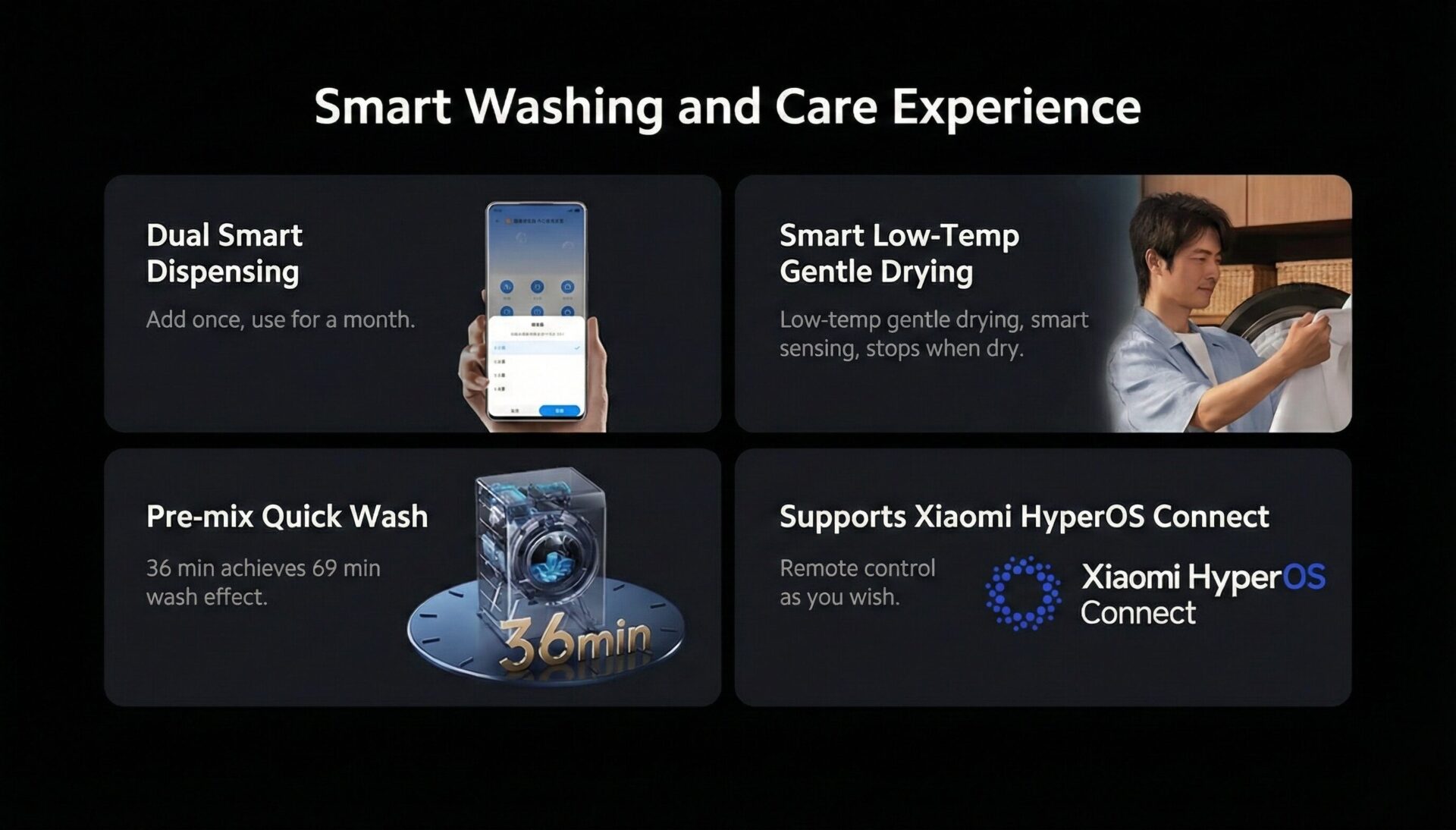 We have witnessed smart dispensing in the past, but Xiaomi has perfected the technology. This machine uses Dual Channel Intelligent Dispensing. This technology weighs your clothes and dispenses the right quantity of detergent and softener. This requires you to fill the reservoir only once a month.
